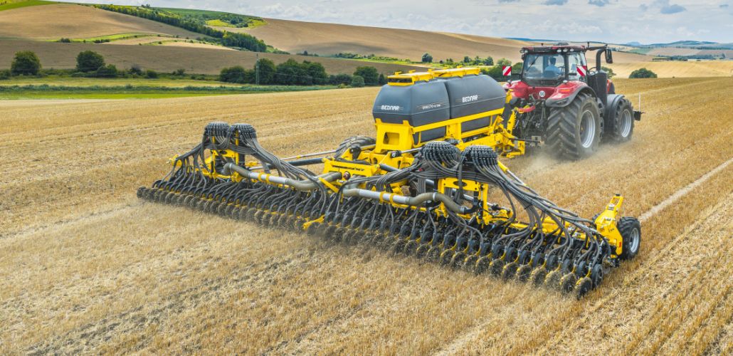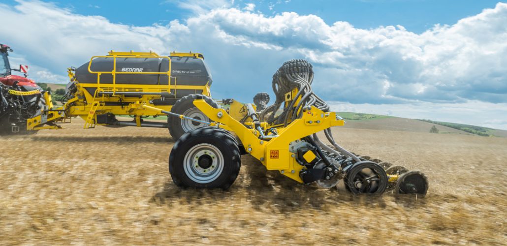 DIRECTO NE disponuje dvěma přetlakovými zásobníky o celkovém objemu 6 000 litrů. Přetlakové provedení výrazně zlepšuje zaplnění výsevního válečku, umožňuje přesné odměření vysokých dávek a zajišťuje plynulé setí i při použití méně kvalitního osiva nebo hnojiva. Díky této technologii dosahuje rovnoměrného rozdělení materiálu po celé šířce pracovního záběru.