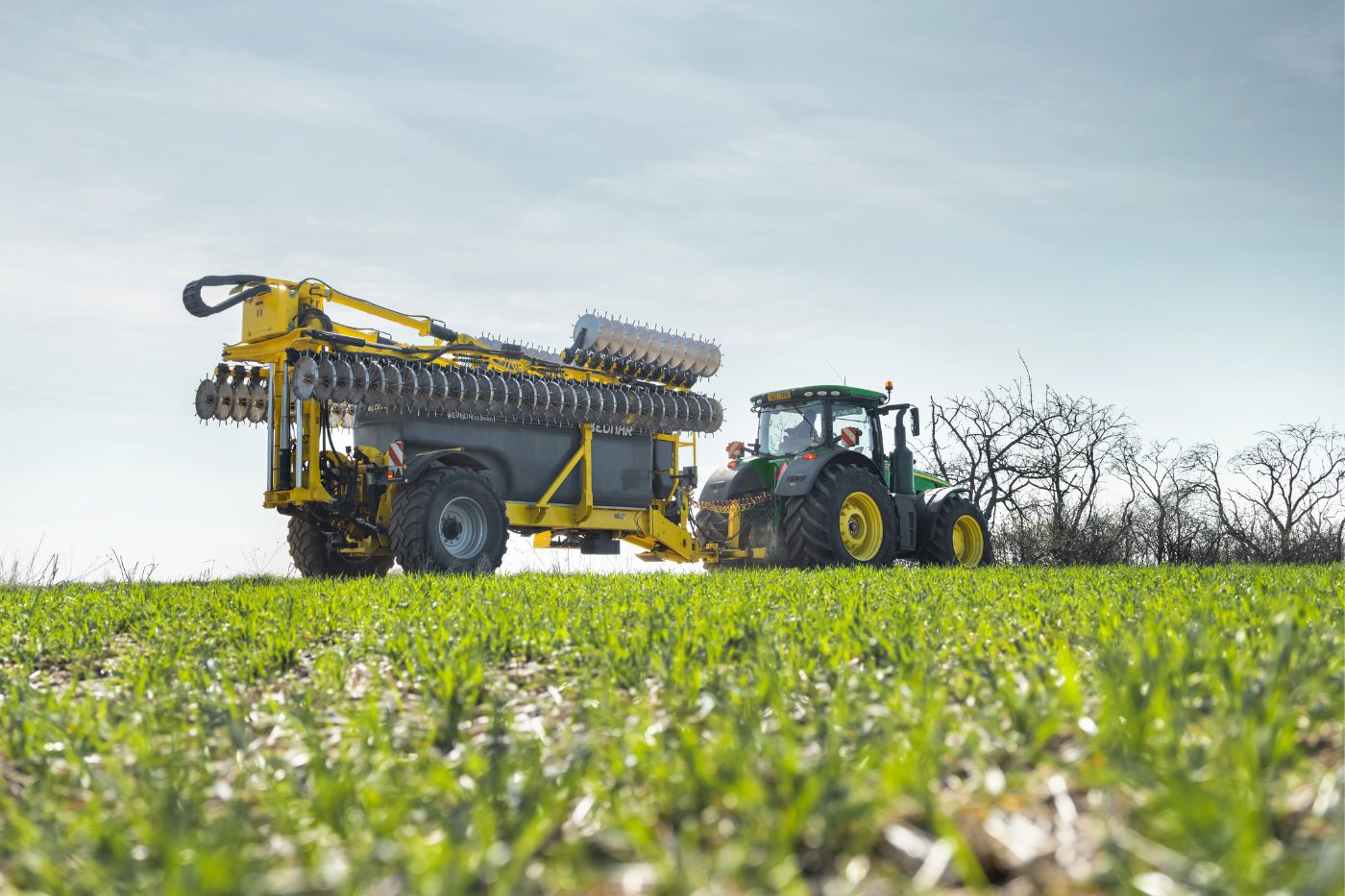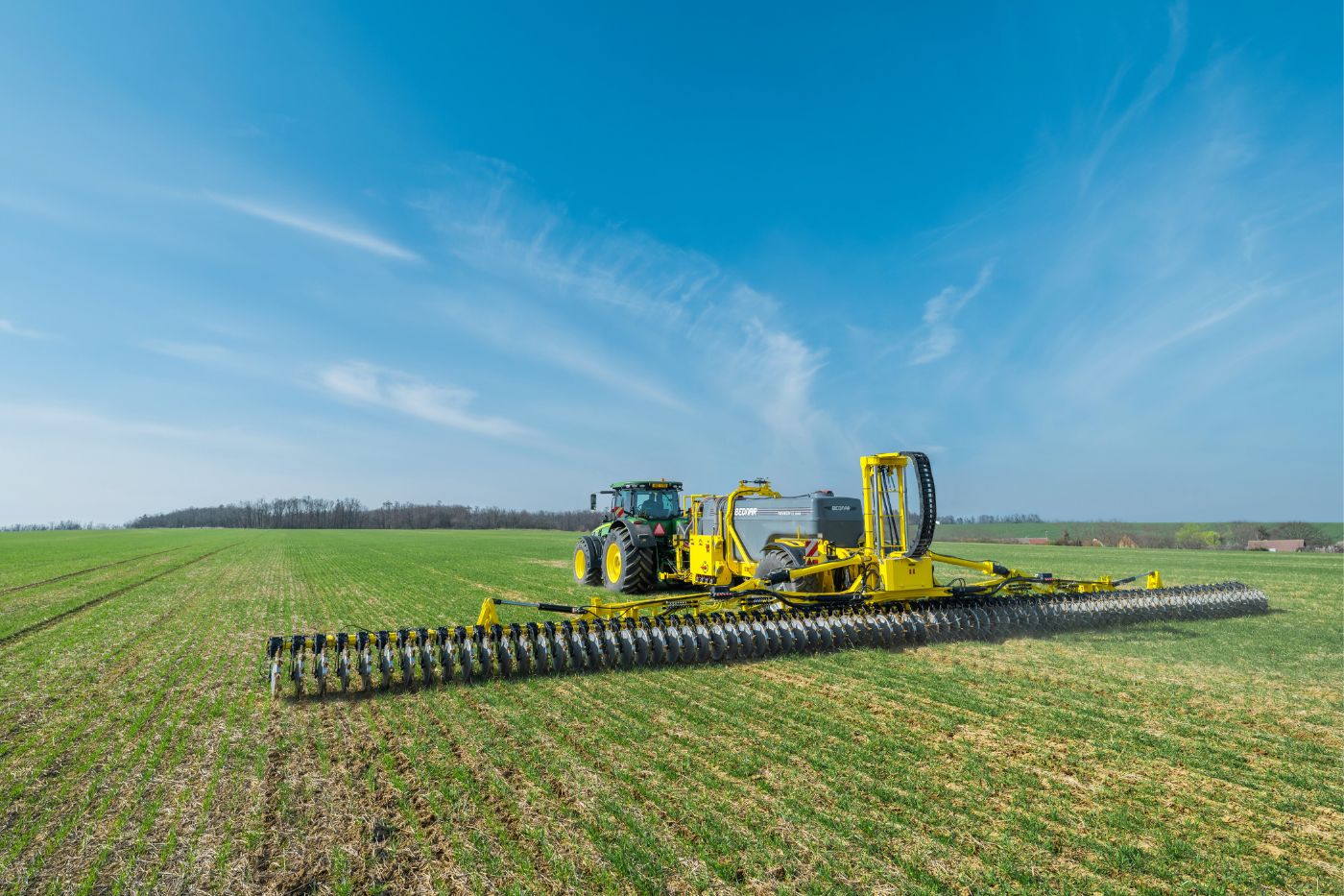 By injecting liquid nitrogen using a spoke wheel, yield increases by up to 9% and protein increases by up to 20% compared to traditional spreading of granular fertilisers. Conventional granular fertilisers have an efficiency of 65–85%, while liquid fertilisers achieve significantly higher efficiency – up to 95%! No fertiliser evaporation, minimal fertiliser leaching. Nitrogen is injected to a depth of seven centimeters, making it immediately available to the plant and ensuring a faster effect, especially in dry conditions. The fertiliser is injected precisely close to the root system. There is no risk of burning the plants.