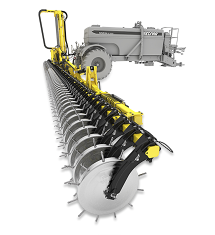 Lightweight yet sturdy boom carrying injection spoke wheels. The boom has working widths of 12 m, 15 m and 18 m.