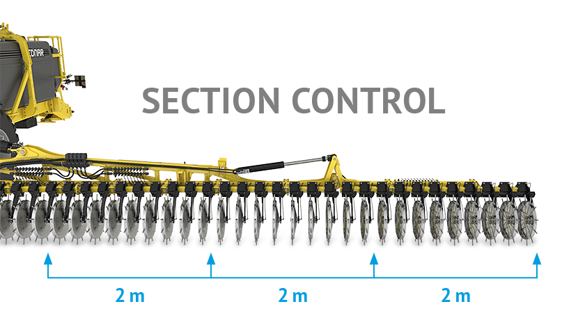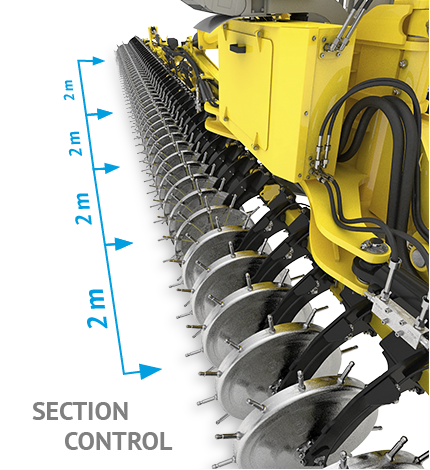 The technical and software solution allows to reduce to a minimum the injection of liquid for each 2 m of working width. The injection tip must have a constant supply of liquid to prevent the tip from clogging.