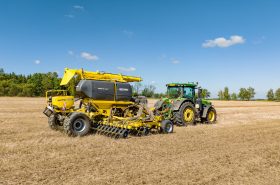 In Kombination mit der Säeinheit ALFA DRILL ist es möglich, bis zu drei Saatgutarten in einem Durchgang zu säen oder gleichzeitig Mikrogranulat auszubringen. Die Säeinheit ALFA DRILL 400 hat ein Behältervolumen von 400 Litern. Das Material aus der Säeinheit ALFA DRILL kann in die Säscharen, Düngerscheiben oder im Verhältnis 50:50 geleitet werden.