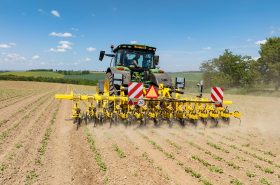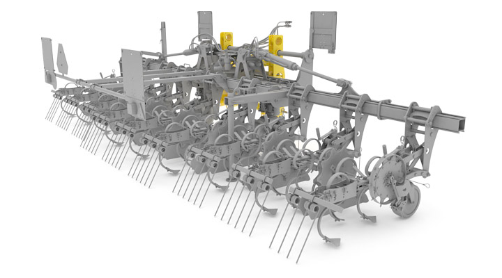 The ROW-MASTER RN cultivator has a robust frame with excellent versatility in weeding, removing soil crust, and eliminating weeds in row crops. The adjustable row spacing from 45 to 80 centimetres makes it possible to use ROW-MASTER in the crops of maize, sunflower or sugar beet. To reduce the risk of damaging plants and to achieve a high output, the cultivator can be equipped with the self-guiding CultiCam system.