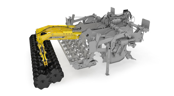 Il dissodatore TERRALAND TN_PROFI è molto compatto durante il trasporto perché la sezione del disco falciante si ripiega idraulicamente sopra il telaio principale della macchina. Un vantaggio di questo design è che il dissodatore TERRALAND TN_PROFI può funzionare anche senza utilizzare la sezione posteriore, ad esempio, in campi estremamente impregnati d’acqua.