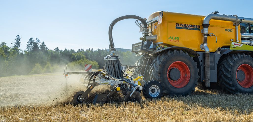 Brona talerzowa SWIFTERDISC XN_Z może być wyposażona w zestaw do aplikacji gnojowicy, który obejmuje głowicę rozdzielczą VOGELSANG DosiMat i przewody aplikacyjne. Wykonuje ona uprawę gleby i aplikację gnojowicy w jednym przejeździe. Zapobiega to stratom nawozu spowodowanym parowaniem i eliminuje emisję azotu do środowiska.