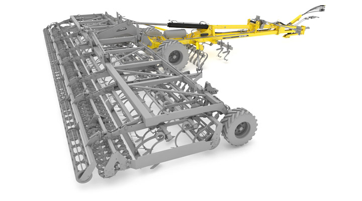 Kultywator FENIX FO można wyposażyć w koła podporowe do perfekcyjnego kopiowania terenu. Zapewniają równomierną uprawę pola na zadanej głębokości roboczej na całej szerokości maszyny.