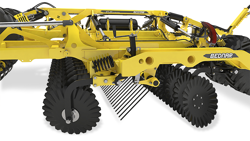 Bara de nivelare este utilizată pentru nivelarea oricăror denivelări din spatele secțiunii cu discuri. Rezultatul este un câmp perfect nivelat.