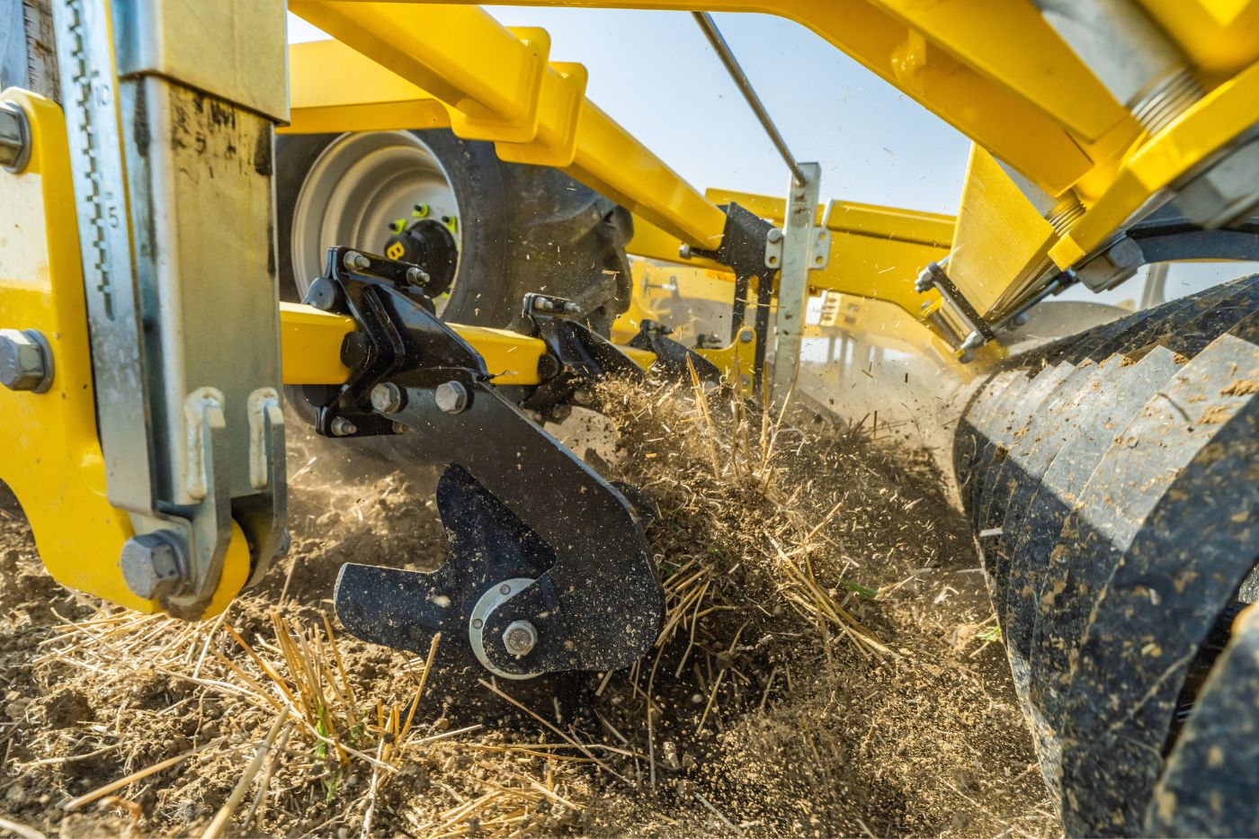 Cultivatorul FENIX FO GEN II poate fi echipat cu roți de sprijin pentru o conturare perfectă a terenului. Acestea asigură cultivarea uniformă a câmpului la adâncimea de lucru setată pe întreaga lățime a utilajului.