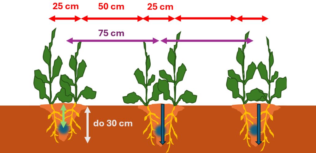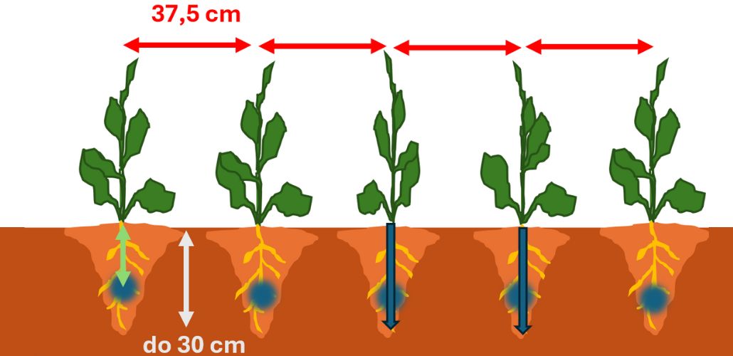 Робоча секція призначена для зонального розпушення ґрунту тільки в смугах, де висіваються насіння і добрива. Розрихлена частина забезпечує більш ефективне проникнення дощової води, краще прогрівання ґрунту з одночасним точним внесенням насіння і добрив у профіль ґрунту. На відміну від цього, необроблена зона захищає структуру ґрунту, не вивільняє вуглець з ґрунту і підтримує капілярність ґрунту. Конструкція сівалки пропонує два варіанти відстані між робочими стійками – 35/37,5 см або 70/75 см.